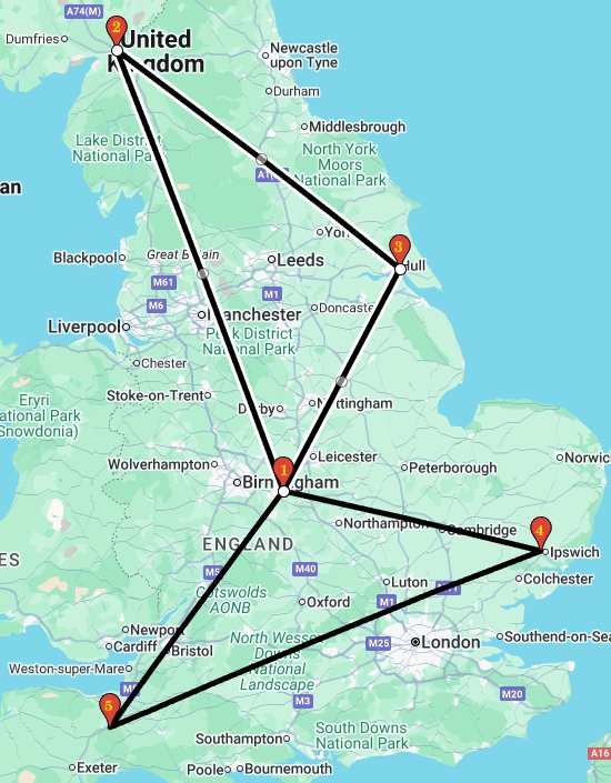 The pre-verified route consists of a northern loop (stops 1,2,3) and a southern loop (stops 1,4,5), each verified at over 500 miles. To complete the ride, you must ride and document two loops within 24 hours. That could be both, or either one twice, riding clockwise or anticlockwise.